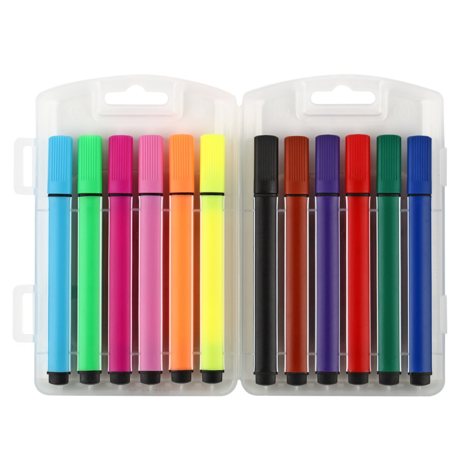 Tenn Well water pen, 12-color washable felt tip pen with mobile case (12 pieces)