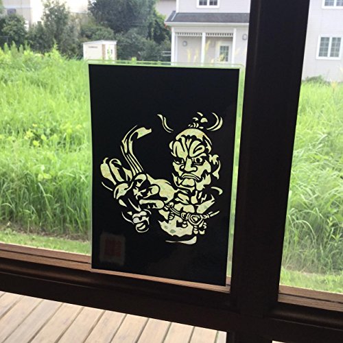 Cutout picture Japanese art collage KIRIE “Todaiji Kongorikishi Un-gyo” Vajradhara(a Deva king who is a guardian of the Buddha) Made by Washi(Japanese paper) Blurred Yellow, 4” x 6”