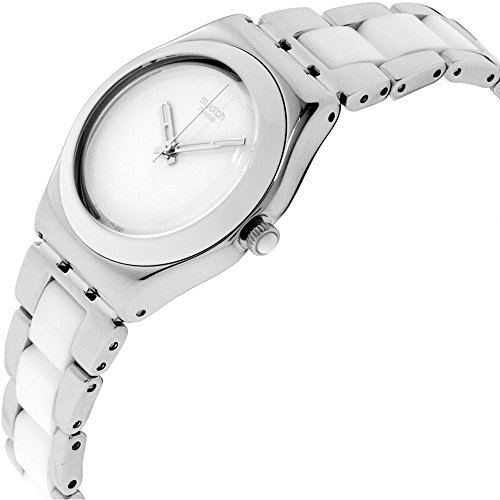 Swatch YLS141GC Tresor Blanc White Dial Silver Two Tone Steel Women Watch NEW