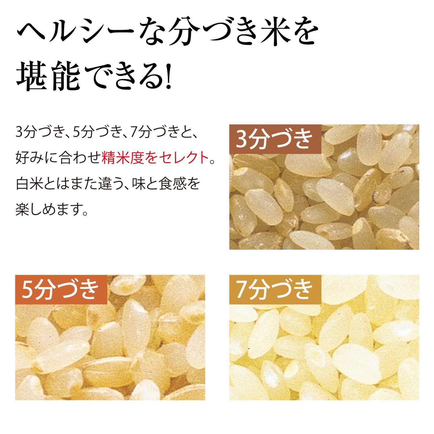 Since rice milling degree can be selected, you can enjoy rice with high nutritional value, leaving nutrients contained in germ.