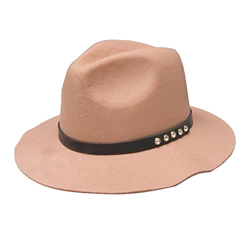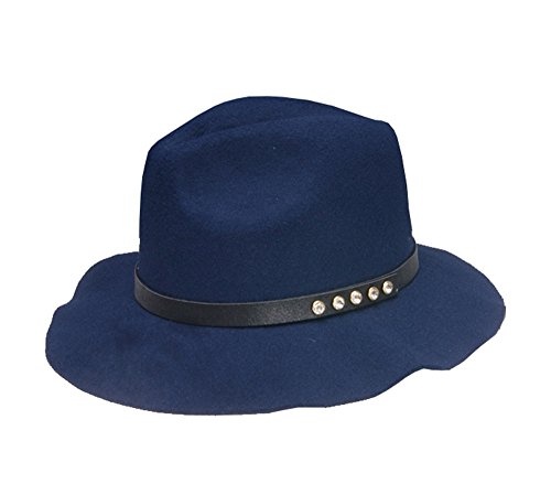 Product Description Sparkly 4 crystal stud wool blend band fedora hat for women. 4 classic Solid color fit any colors. A Wide,floppy brim. Inside, a drawstring grosgrain hat band that adjusts for a custom and comfortable fit. 0