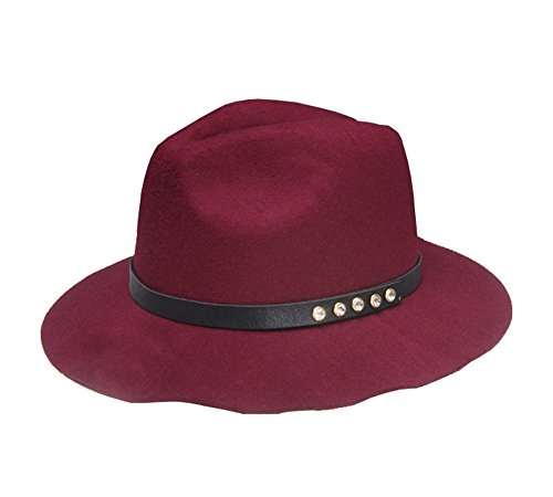 (missfiona)/Accessories/Hats/DIRECT FROM USA/missfiona 4 Crystal Stud Leather Belt Wool Blend Fedora Jazz Casual Hat Warm Floppy Brim