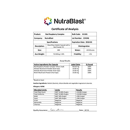 -. Title : NutraBlast Red Raspberry Powder Complex 700Mg with Shiitake, Maitake, Reishi Mushroom Powder from Fruit Tops - Supports Menstrual Cycles, Urinary, and Digestive Tract - Made in USA (60 Capsules)