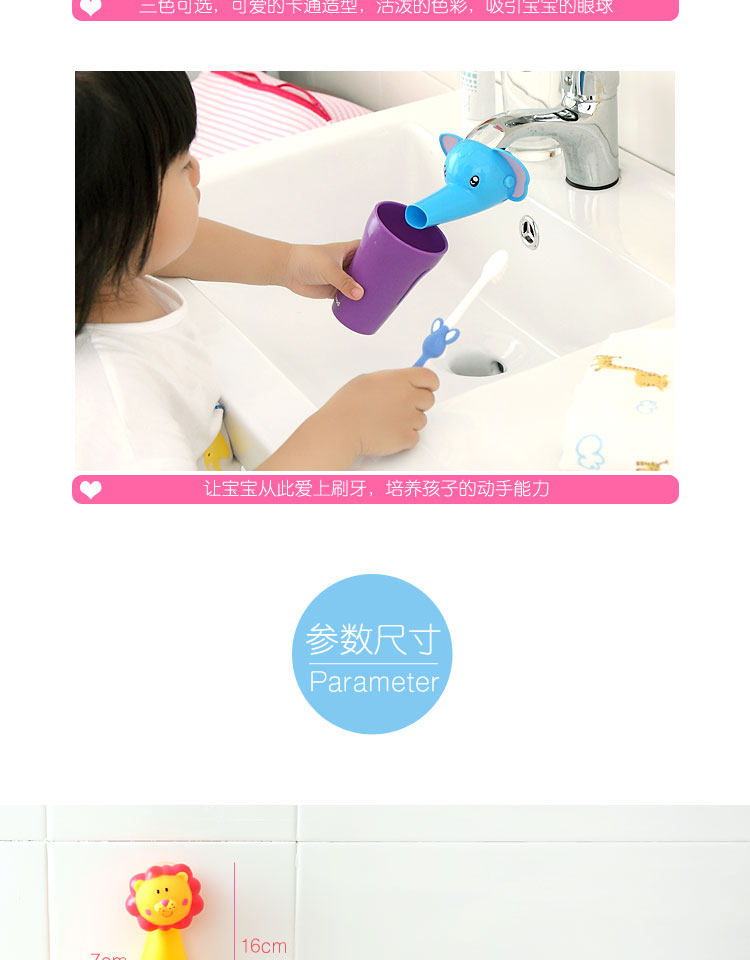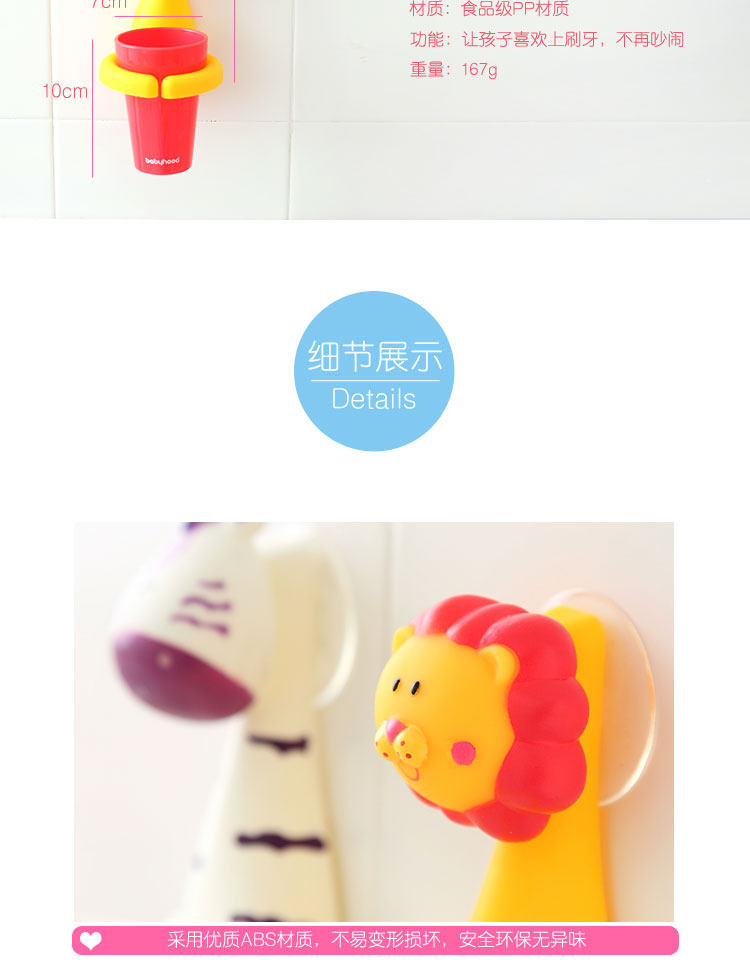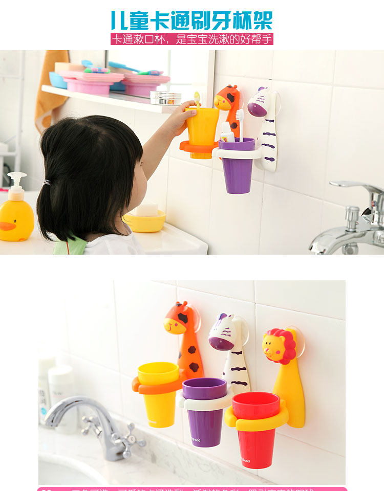 超可爱的卡通造型刷牙杯架套装,三种活泼色彩,吸引宝宝的眼球,壁挂式设计,方便卫生,节约空间,增加宝宝刷牙乐趣
