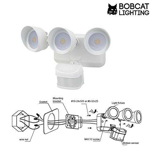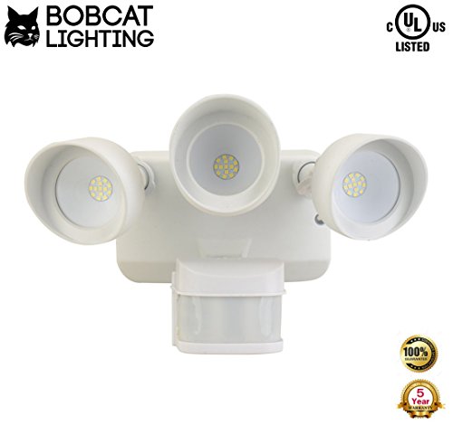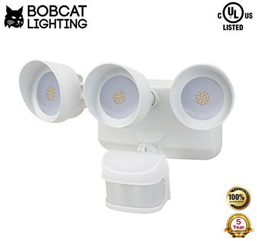 Bobcat LED Flood Lights 36 Watts 270 deg Motion Activated Outdoor Security Lights Three Head 3000 lumens 5000K White,Waterproof IP65 & UL Certification