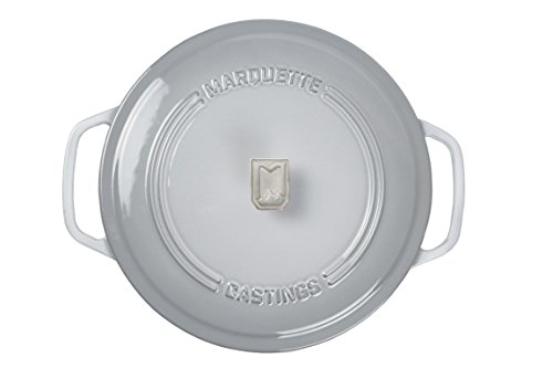 Studio : Marquette Castings Publisher : Marquette Castings Product Description This gorgeous cast iron Dutch oven is the perfect addition to your cookware collection. It's great for stovetop, oven, searing, simmering, baking and so much more! Our design is based on exhaustive research of the leading Dutch ovens and our piece incorporates all of the best elements. With a large diameter at 10 5/8" this Dutch oven has all the space you need to create meals of all sizes. The light colored high gloss interior makes it easy to clean and care for and the large loop handles are easy to grip with oven mitts. The heavy duty lid has an optimized fit to allow for a precise amount of evaporation and is complete with a unique polished stainless steel lid pull. It's one of the lightest 6-quart Dutch ovens available at 13.8 pounds and has a totally flat bottom for improved use on induction ranges and glass tops. Oven safe up to 500 degrees Fahrenheit, hand wash only and it comes with a lifetime warranty! More colors coming soon! Reach out to our customer service team if you have any questions or concerns with your Dutch oven. 0