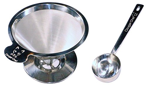 -. Brand : Cougar Chef -. Color : Stainless Steel -. EAN : 0865385000317 -. Feature : ✔ POUR OVER AND ENJOY - You don't need a big, expensive machine to brew a delicious cup of coffee. All you really need is hot water, fresh ground coffee, and this pour over coffee dripper. / ✔ FAST, FLAVORFUL COFFEE - Brewing the perfect cup is simple: put some of your favorite coffee into the cone shaped basket, set it on top of your coffee cup, and pour hot water onto the coffee grounds. Voila! / ✔ 100% STAINLESS STEEL - This pour over coffee dripper is made entirely of high quality stainless steel (18/8, 304 grade). No plastic, no sticky rubber - just pure, food-safe stainless steel. It will not rust, and it is dishwasher safe. / ✔ PERMANENT MICRO MESH FILTER - The built-in stainless steel double micro mesh eliminates the need for paper filters while allowing flavorful coffee oils to infuse the brew. / ✔ ONE PIECE DESIGN - The entire coffee dripper is one single piece, with an oversized, rounded easy grip handle that makes it easy to hold and move around. A stainless steel coffee scoop is also included in the box. -. Label : Cougar Chef -. Manufacturer : Cougar Chef -. ProductGroup : Kitchen -. ProductTypeName : KITCHEN -. Publisher : Cougar Chef -. Studio : Cougar Chef -. Title : Cougar Chef Stainless Steel Pour Over Coffee Dripper - Permanent, Paperless, Reusable Coffee Filter Cone - Double Mesh Single Cup Coffee Maker with Stand and Coffee Scoop -. UPC : 865385000317