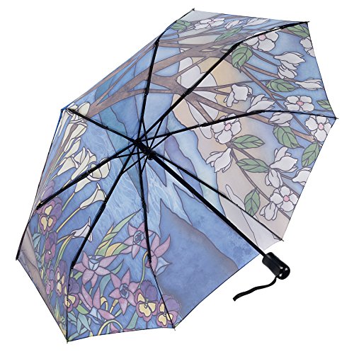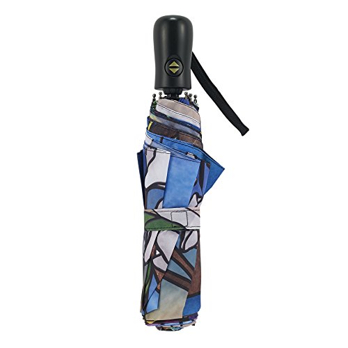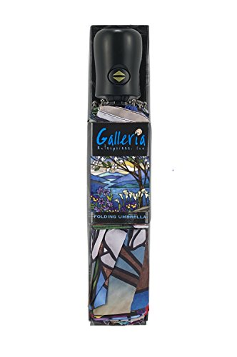 -. Title : Galleria Stained Glass Landscape Auto-Open/Close Extra Large Portable Rain Folding Umbrella for Women, 48-inch canopy, compacts to 12" fitting in most totes, unbreakable fiberglass ribs