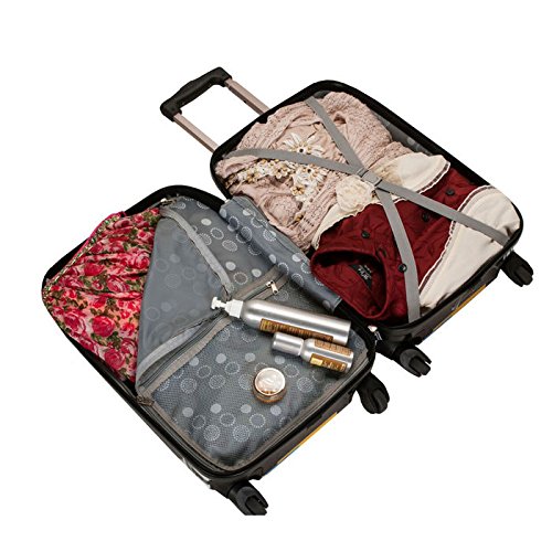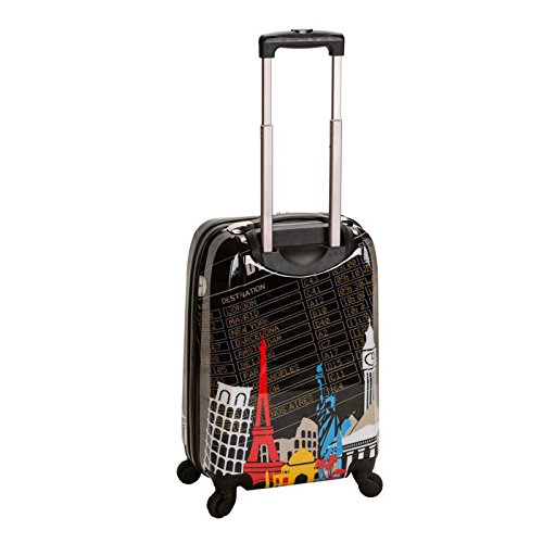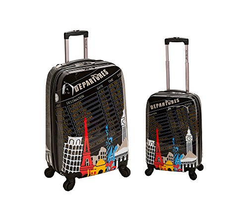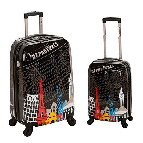 Studio : ROCKLAND Publisher : ROCKLAND Product Description This 2 pc. Set is made of polycarbonate/ABS. Polycarbonate is the same material used to manufacturer bullet proof glass. The major benefits of this material - it is extremely lightweight, it is durable, and protects the contents of your luggage. Eight multi directional spinner wheels rotate 360 degrees for easy maneuverability. This luggage allows you to pack more while avoiding the excess weight surcharges imposed by most airlines. ? Multi-directional spinner wheels for easy maneuverability? Modern internal chrome telescoping handle with push button handle.? Interior mesh and zip pocket and elastic pocket* 5 year warranty * 20"X13"x9" weighs 6 lbs, 28"x17"x12" weighs 10 lbs. 0