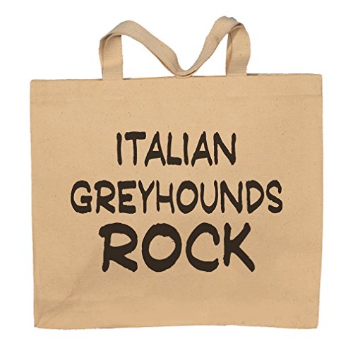 Binding : Apparel Product Description Italian Greyhounds Rock . A Fun way to show how you feel with a totebag. The Design/Saying is printed on the front of this canvas tote bag. We use the newest best technology to print the design with great inks that are cured into the product. This new high tech way of producing garments is very fade resistant. WE DO NOT USE TRANSFERS. It is great, since you dont have that thick transfer feeling. The feel is very smooth and comfortable. 0