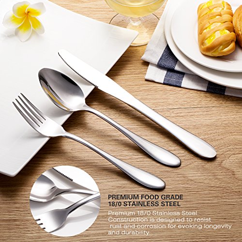 Add Excgood Premium Flatware Set To Your Kitchen Utensils, Enjoy Your Dinner Every Day Are you looking for another set of cutlery, that combines safety, durability and reliability? This premium tableware set will be the exact cutlery which meets you various demands. Just find your match here and let this flatware set serve your family or friends for any dining event Dishwasher Safe Dishwasher safe Design for easily and conveniently cleanup Premium Environmental 18/0 Stainless Steel construction ensures safety use Tableware Crafted from eco-friendly 18/0 Stainless Steel, is standing up to the rigors of everyday use in your kitchen or dining room, while resisting rust, corrosion to evoke longevity and durability. Features: -Design with mirror finish. Never requiring polishing. -Presents a classic and elegant Look, sleek enough for comfortable Hand Feeling Warm tips to help you care for your sterling silver flatware -Please Promptly wash or rinse your flatware with hot water and dry it after Every time you use it. -Do avoid leaving your flatware sitting in water, as soaking can permanently damage the metal -Use separate baskets to place each stainless steel flatware in the dishwasher -Keep flatware in a moisture-free drawer in your daily using 10-piece Flatware Set including: 2 x Dinner Spoon (Pointed Spoon) - 7.44inch ,1.6oz 2 x Dinner Fork -7.43inch ,1.27oz 2 x Table Knife - 8.92inch , 2.8oz 2 x Salad Fork -6.25inch , 0.95oz 2 x Teaspoon (Pointed Spoon) - 6.01inch , 1.13oz Service from Excgood We offer 12 Months Hassle-Free Breakage Warranty with our friendly customer service. For any problem during your use or install item bought from Excgood, please kindly contact us directly, our customer service team will service you within shortest time, and make you 100% satisfaction. 0