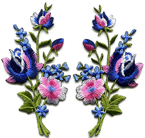 Pink blue roses pair flowers floral bouquet boho embroidered appliques iron-ons patches new