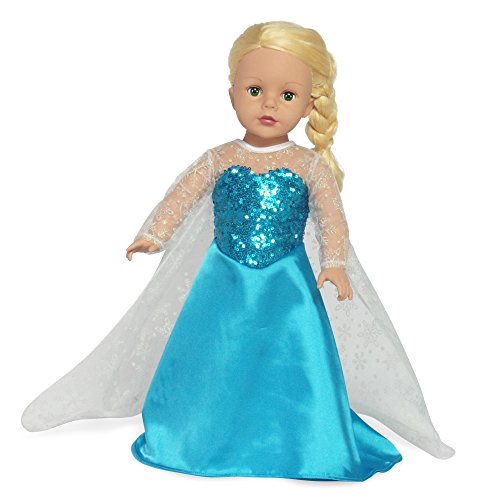 - Includes Princess Elsa inspired shimmering long-sleeved teal dress / ballroom gown.