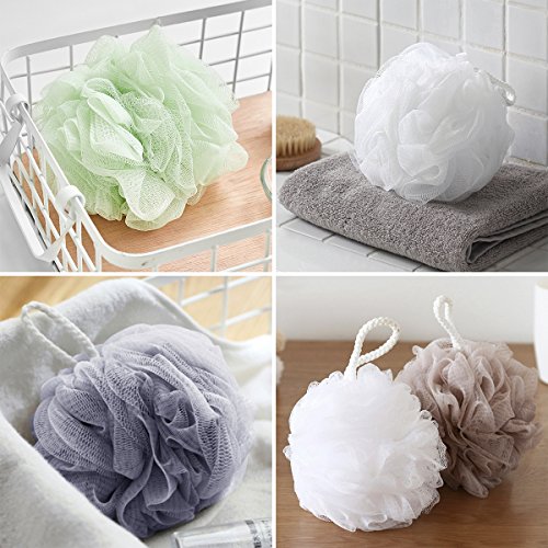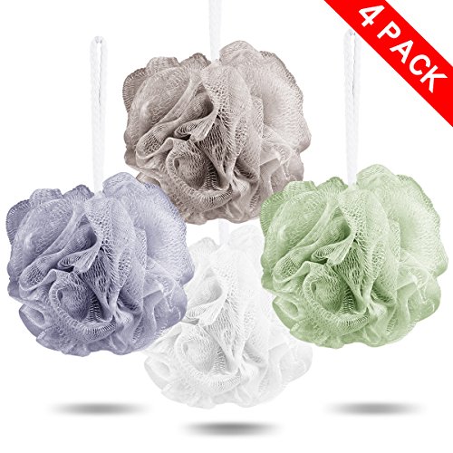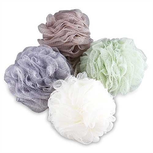 YOMETOME Bath Shower Sponge Loofahs Mesh Pouf Body Scrubber Ball, Mesh Bath and Shower Sponge Pack of 4 (60g/pcs)