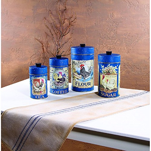 Tea Coffee Flour Sugar Rooster Hen French Style Tin Food Safe Canisters with Lids Set of 4