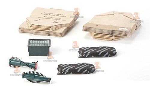DREHFLEX - Vorwerk alternativ - 24tlg. SET 20 Saugertuten Papier 1 Hepafilter 2 Motorfilter geeignet fur Kobold VK 130/131 und 2 Rundbursten fur ET340, EB350,EB351 DREHFLEX