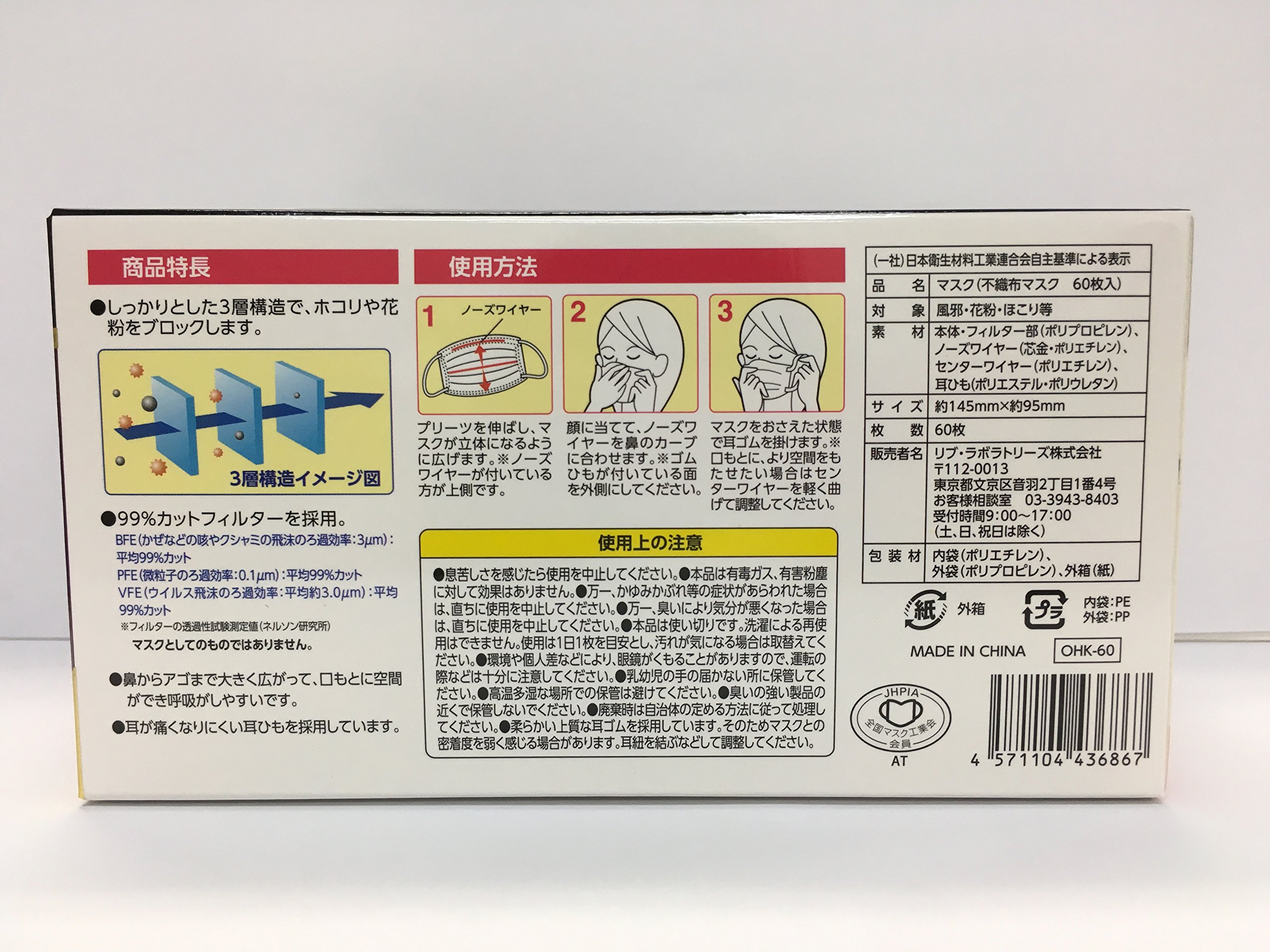 ● With a solid 3-layer structure, it blocks dust and pollen.