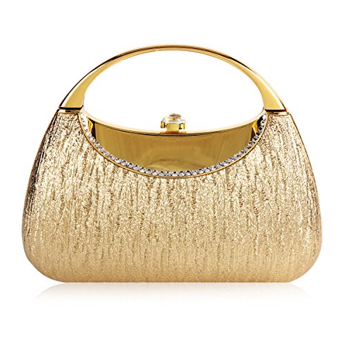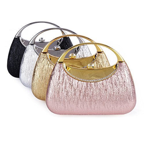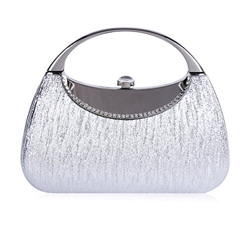 Product Description The graceful metal clutch handbag deserves your attention! The glittering wiredrawing design attracts people's eyes when you show up. The clutch bag is fastened with a crystal snap on the top. This bag has metal handle to carry. Along the front of the top adorns a line of rhinestone. This evening bag has detachable metal chain, so you can use it as a crossbody bag or just clutch it on your hand. The velvet lining feels pretty comfortable. The clutch-handbag is big enough for you to hold credit cards, tickets, cash and some other important things. Bag Measurement: length 18cm (7.1 inches); width 14.5cm (5.5 inches); height 7cm (2.8 inches); shoulder strap 120cm (46.8 inches). Note: Different people with different measurement, so it may exist 2-3cm measurement errors. Hope you will not mind it. 0