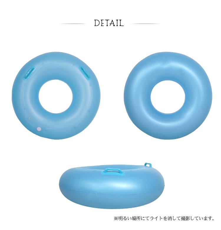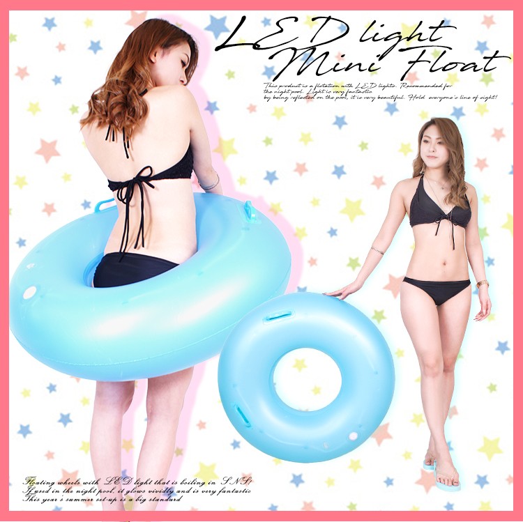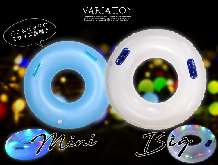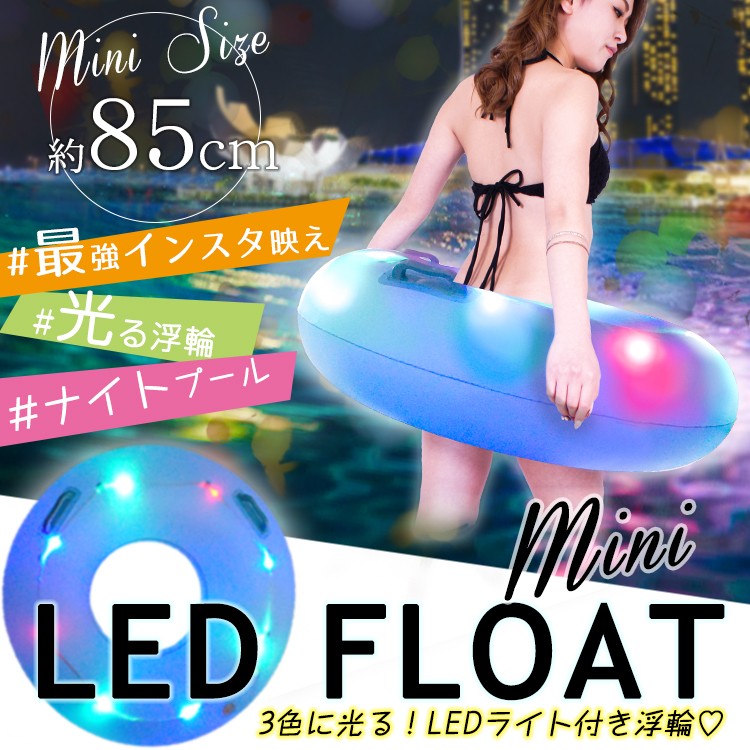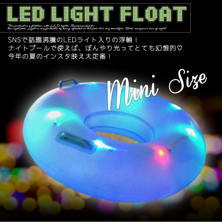 ナイトプールに映える!夜のプールにカラフルな3色LEDがふんわり光るLEDライト入りの浮輪が登場! ボタン1つで2パターンの点灯切替(通常点灯&フラッシュ点滅)、ON/OFFも簡単切替可能。 小ぶりなミニサイズ。プールや海で目を引くこと間違いなし! |