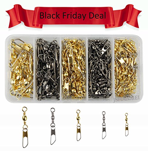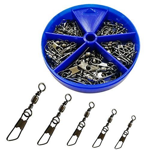 Product Description1)Rolling Barrel Swivel Interlock Snap 2)Reusable Plastic Box Keeps Hooks Organized Easily Stored 3)Package Include: #10: 50pcs (gold) #8: 40pc (black) #6: 25pcs (gold) #4: 20pcs (black) #2: 15pcs (gold)0