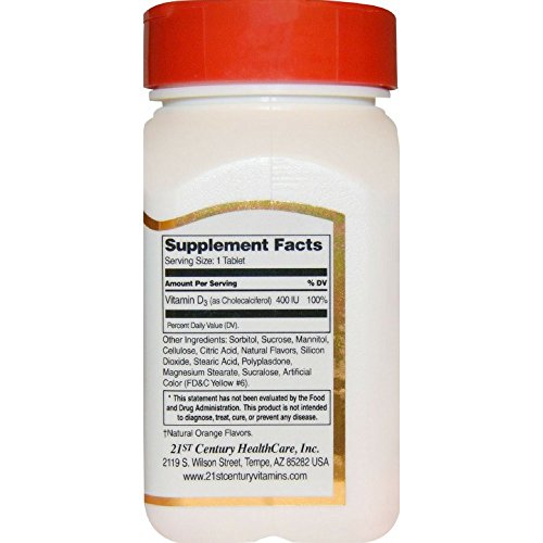 -. Feature : 21st Century / 21st Century D3 Chewable - Orange Flavor 400 Iu 110 Tabs / Gluten Free