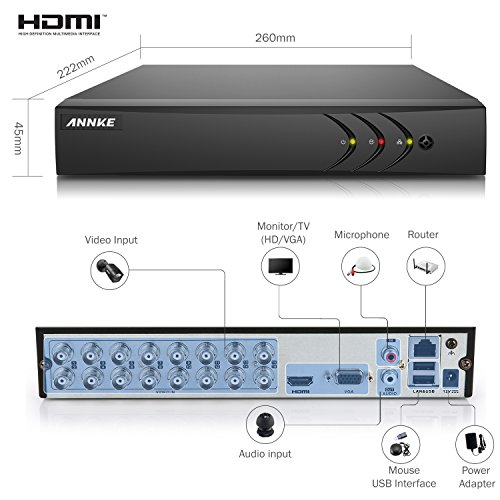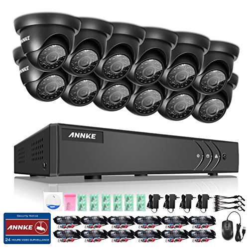 Annke 16 Channel HD-TVI 720P Security System and (12) 1.0MP 1280tvl Super Night Vision CCTV Dome Cameras, Intelligent motion detection email alert with images, NO HDD