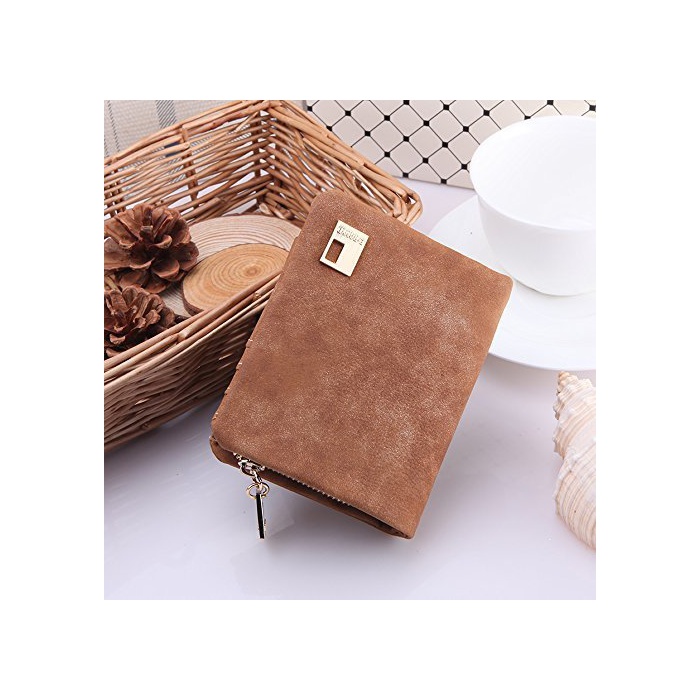 원본상품명: 【ノブランド品】四角いチャム付きマットカラ三つ折り財布