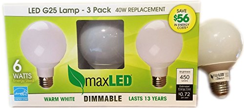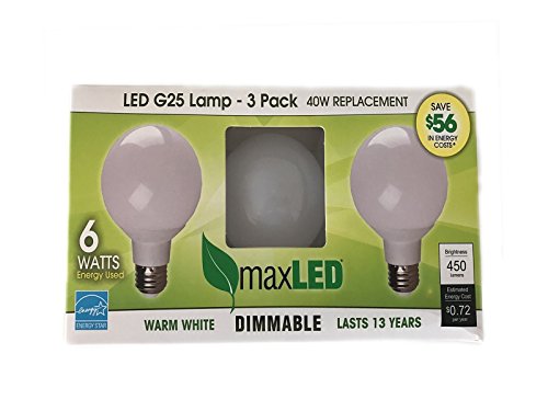 MaxLite maxLED G25 6G25DLED27 Lamp 40W Replacement Warm White Dimmable Bulb (Pack of 3)