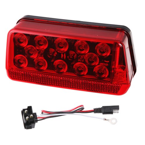 -. Feature : Waterproof LED surface mount tail light / Wrap-around design eliminates the need for rear side marker/reflector / Plug-in 12" harness with 2-way flat connector and ring terminal ground wire / Stainless steel mounting hardware included / 7-Function, Right/Curbside / Meets FMVSS/CMVSS 108 requirements for trailers over 80" wide / Dimensions 7.53" x 3.48" x 3.13"