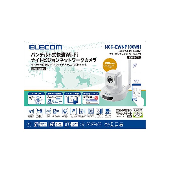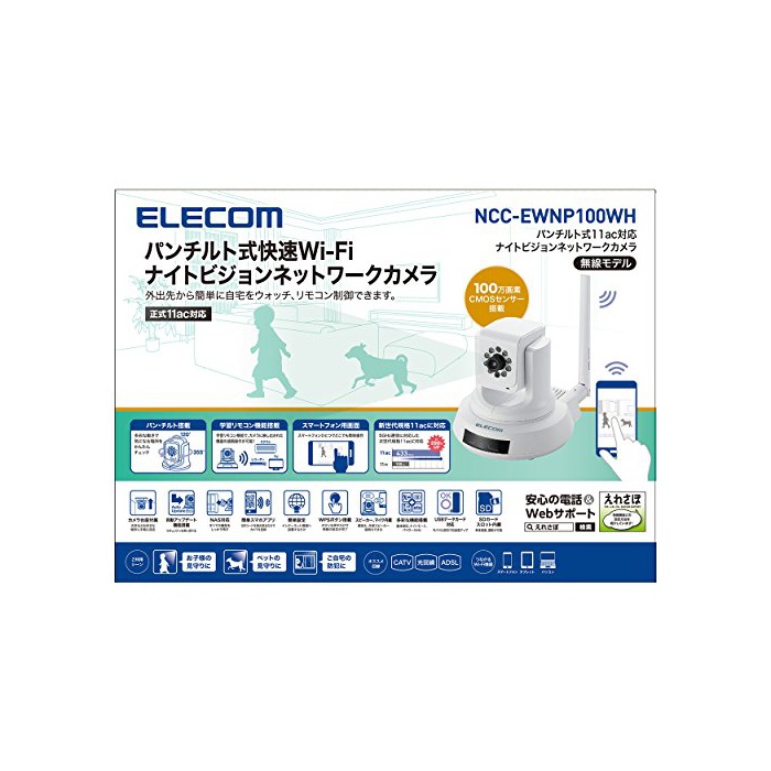 원본상품명: ELECOM ネットワ?クカメラ 11ac パンチルト ナイトビジョン スマホ管理?? NCC-EWNP100WH