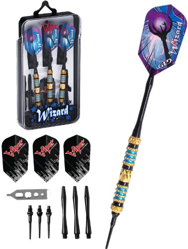 The Viper Wizard Soft Tip Darts feature tempered knurling and wide grooves for great handling and dart direction. A definite for the darter with a bold hold! These darts feature diamond cut barrels for an elegant look. Available in 2 barrel designs. Included is the Translucent Deluxe Dart Pal for a cool way to transport your darts. Cast a spell on your opponents with Wizard Soft-Tip Darts. Features: Available in 18 gram, Brass barrels with painted grooves and diamond cuts -Aluminum shafts -2 Sets of flights -2BA tips -Translucent Deluxe Dart Pal: Includes extra flights, extra tips, extra shafts, and a dart mechanism