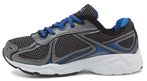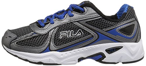 Fila Boys' Quadrix Skate Shoe, Black/Dark Silver/Prince Blue, 5 M US Big Kid
