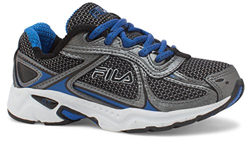 Fila Boys' Quadrix Skate Shoe, Black/Dark Silver/Prince Blue, 11 M US Little Kid