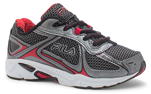 Fila Boys' Quadrix Skate Shoe, Black/Dark Silver/Fila Red, 11 M US Little Kid