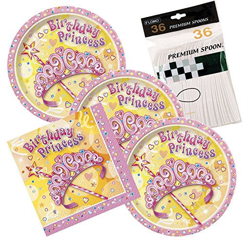 Pretty Princess Birthday Party Themed Dessert Plates And Napkins includes Spoons Serves 32