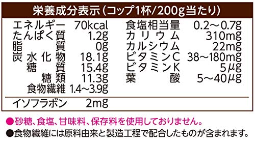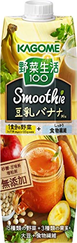 原材料:野菜(にんじん、さつまいも、ケール、ほうれん草、アスパラガス、クレソン、パセリ、かぼちゃ、レタス、キャベツ、ビート、だいこん、はくさい、たまねぎ、セロリ)、果実(りんご、バナナ、レモン)、大豆、食物繊維、寒天、豆乳/pH調整剤、香料、乳化剤、ビタミンC