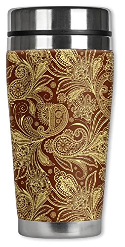 Mugzie 858-MAX "Yellow & Brown Paisley" Stainless Steel Travel Mug with Insulated Wetsuit Cover, 20 oz, Black