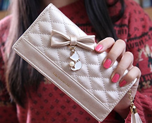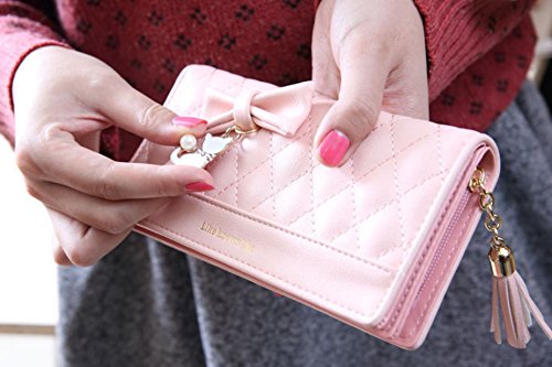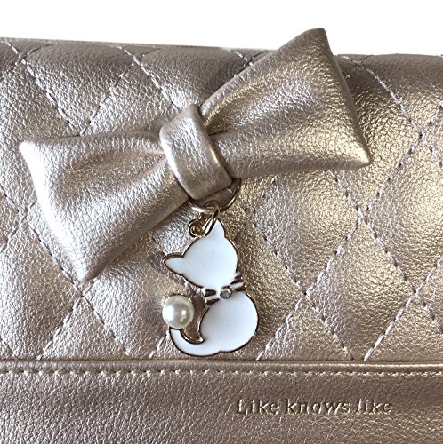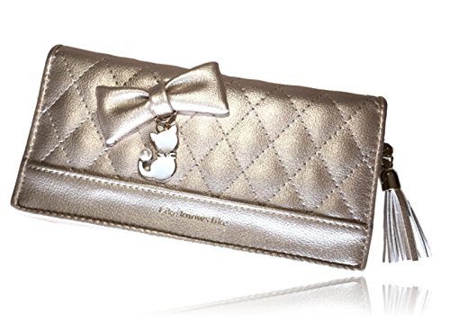 -. Feature : ネコとリボン、フリンジタッセルのチャームが可愛いラウンドジップ長財布です / キルティングされたやわらかな手触りのPUレザー製で高級感を出しています / 手頃なサイズ感なのにカード12枚 お札や領収書が入るポケット3か所の大容量です / ラウンドジップを開くと内部は2室に分かれているので小銭などを整理しやすいです / こちらでは桜色と パールホワイトからシャンパンゴールドまで光の変化で楽しめるホワイトゴールドの2色をご用意いたしました サイズ19×9.5×3cm