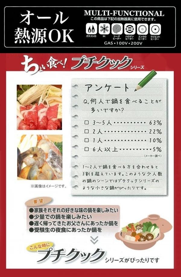 IHでもガス火でも使用可能!ひとりからふたり鍋にちょうどいいサイズのすきやき鍋です。 |