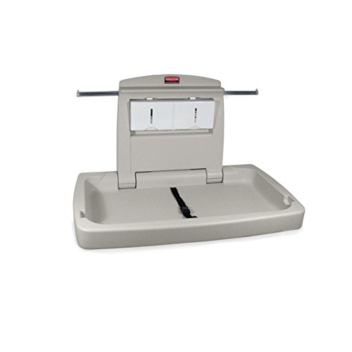 -. Binding : Misc. -. Brand : Rubbermaid Commercial Products -. Feature : Curved changing surface and safety straps keep child secure. Built-in hooks free caregiver hands. / Its HDPE (high-density polypropylene) body has better chemical resistance than LDPE (low-density polyethylene) and does not absorb moisture. / Suitable for installation in commercial environments. Meets ASTM, ADA, FDA and EN safety standards. / Built-in accessory shelf keeps baby-changing items safely out of a child's reach, and a smooth surface with large corners for easier cleaning. / 4-inch height by 33 1/4-inch length by 21 1/2-inch width when closed. Requires assembly (instructions and hardware are included). Made in the USA. -. Label : Rubbermaid Commercial Products -. Manufacturer : Rubbermaid Commercial Products -. PackageQuantity : 1 -. ProductGroup : BISS Basic -. ProductTypeName : JANITORIAL_SUPPLY -. Publisher : Rubbermaid Commercial Products -. Studio : Rubbermaid Commercial Products -. Title : Rubbermaid Commercial Horizontal Baby Changing Station