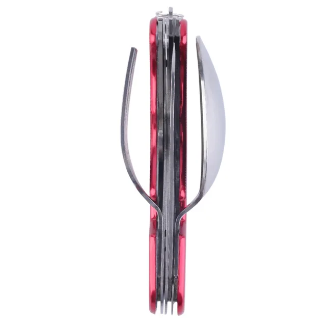 | [해외] 야외 캠핑 휴대용 포크 칼 식기 도구, 스테인레스 스틸 3 in1 다기능 접이식 국자 포크 나이프 여행 세트 |