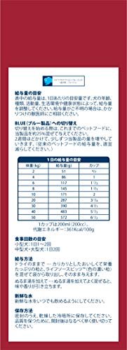 原材料:白身魚、乾燥ニシン(オメガ-3脂肪酸源)、玄米、大麦、オートミール、エンドウでんぷん、エンドウマメ、鶏脂(混合トコフェロールにて酸化防止)、亜麻仁(オメガ-6脂肪酸源)、タンパク加水分解物、乾燥チキン、乾燥トマトポマス、エンドウタンパク、乾燥アルファルファミール、馬鈴薯、乾燥チコリ根、エンドウ繊維、アルファルファ抽出物、サツマイモ、人参、ガーリック、グルコサミン塩酸塩、ブルーベリー 等