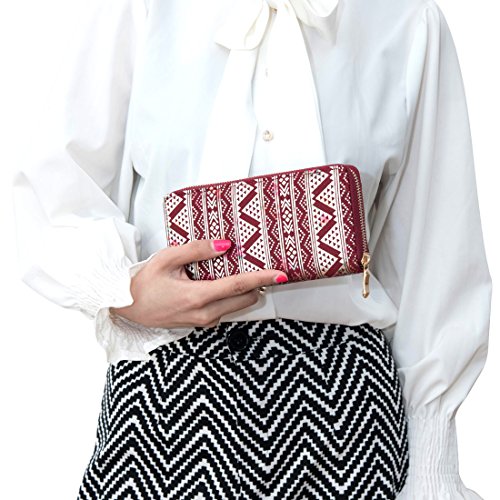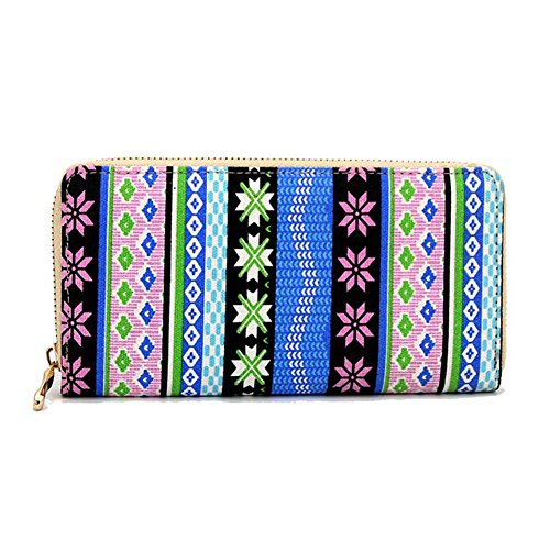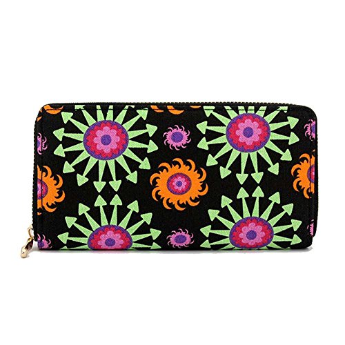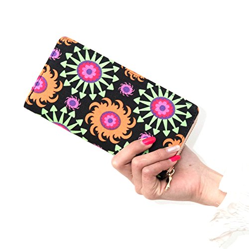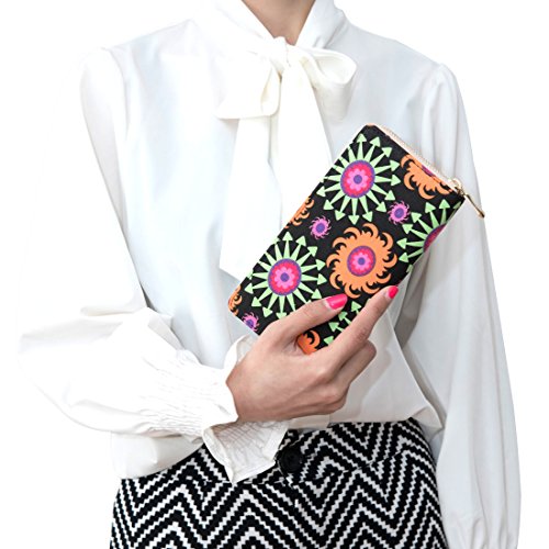 Badiya Women's Printed Canvas Clutch Wallet Cell Phone Zipper Around Long Purse