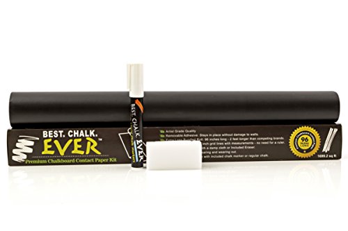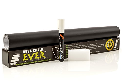 Feature : CHALKBOARD VINYL PAPER KIT peels and sticks anywhere for instant chalkboard. Great for kids, teachers, crafters, artists, and making lists. Awesome for chalk board labels. / FULL 2 FEET MORE PAPER than competitors. Theirs are 6 ft.; ours are a generous 8 ft. Cover 33% more space. Supply lasts longer. Made of THICK PVC vinyl paper that is super tough. / NO DUSTY, MESSY CHALK - use the included Best.Chalk that marks boldly and easily with NO mess. Everything is backed by our famous Lifetime Guarantee. ORDER NOW risk-free and experience the passion we put in every product. / BEATS CHALKBOARD PAINT by a mile! Put our Chalkboard Vinyl Paper on any wall, then take it down and move it whenever you like. Kids can mark on the Vinyl Paper all they want and walls are completely protected. / 2 BONUS EXTRAS including recommended Best.Chalk.Ever Chalk Marker with smooth, bright ink and a generous Best.Chalk.Ever Chalk Ink Eraser. Simply dampen the eraser to clean up chalk marks instantly. Don't hesitate, add to cart now and purchase with confidence!