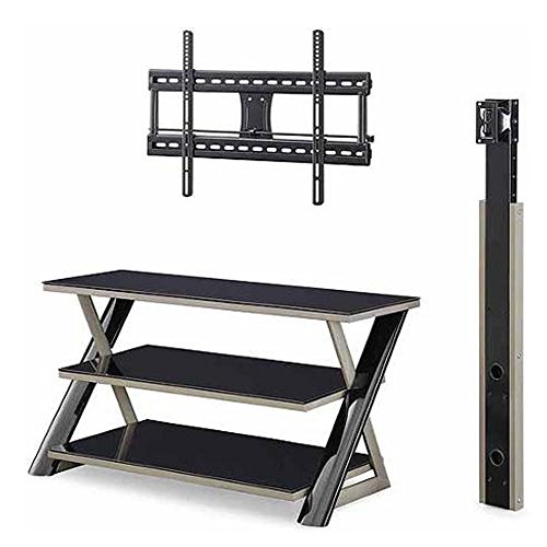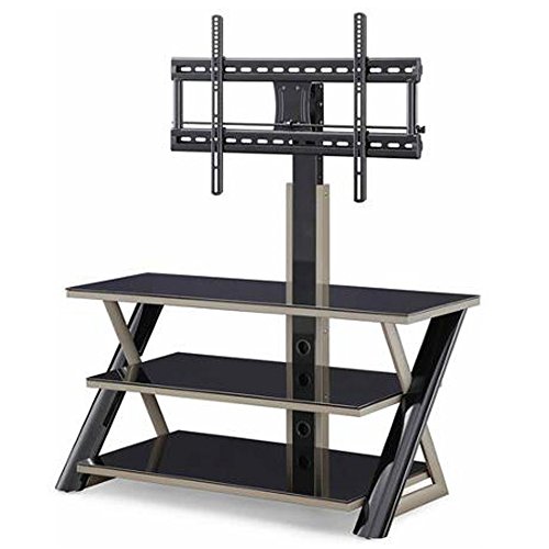 -. Brand : Whalen Furiture -. Color : Glossy Black and Silver Finish -. EAN : 0784672322348 -. Feature : * Features the ability to use as a swinging floater, tabletop or universal TV wall mount / * Swivels your TV screen 45 degrees left or right / * Suitable for most flat screen TVs up to 50" and 135 lbs. / * Concealed cable management & Floor leveling system / * Tempered glass shelves -. Label : Whalen Furiture -. Manufacturer : Whalen Furiture -. Model : LJ-XL-2 -. MPN : LJ-XL-2 -. PartNumber : LJ-XL-2 -. ProductGroup : Furniture -. ProductTypeName : HOME_FURNITURE_AND_DECOR -. Publisher : Whalen Furiture -. Size : assembled size = 44"W x 20"D x 22-51.5"H -. Studio : Whalen Furiture -. Title : Whalen Flat Screen TV Stand for up to 50' TVs- 3-in-One with Universal Wall Mount, Riser, Swivel and Tempered Glass Shelves in Glossy Black and Silver Finish -. UPC : 784672322348