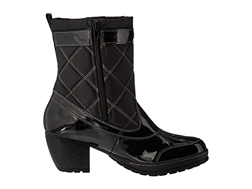 Product Description Delightfully decadent, this quilted nylon heel bootie makes a statement of style wherever you tread. soon to be your go-to season pair for your winter wardrobe, the water-resistant style is also functional with its water-resistant features. 0