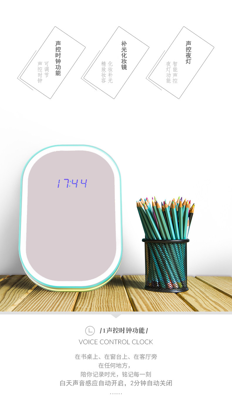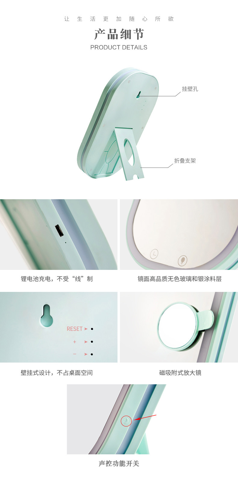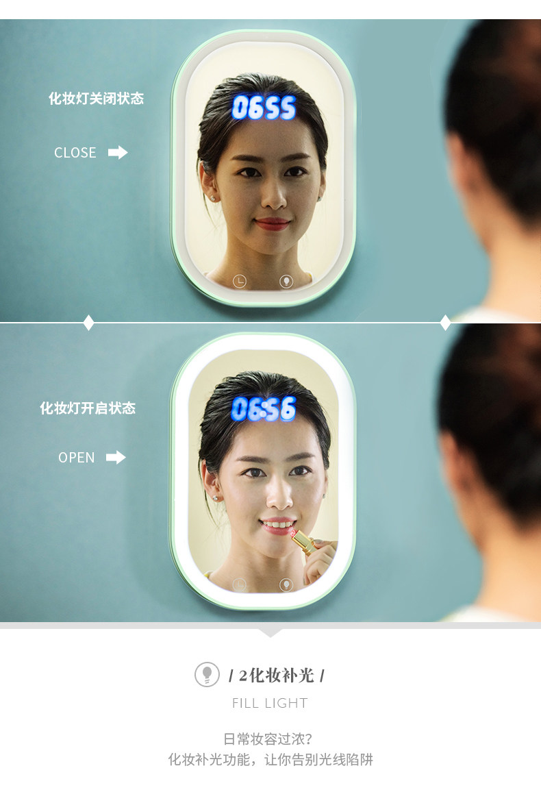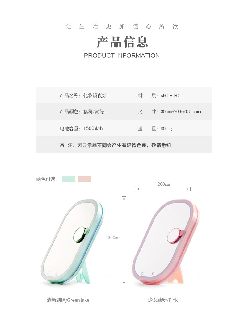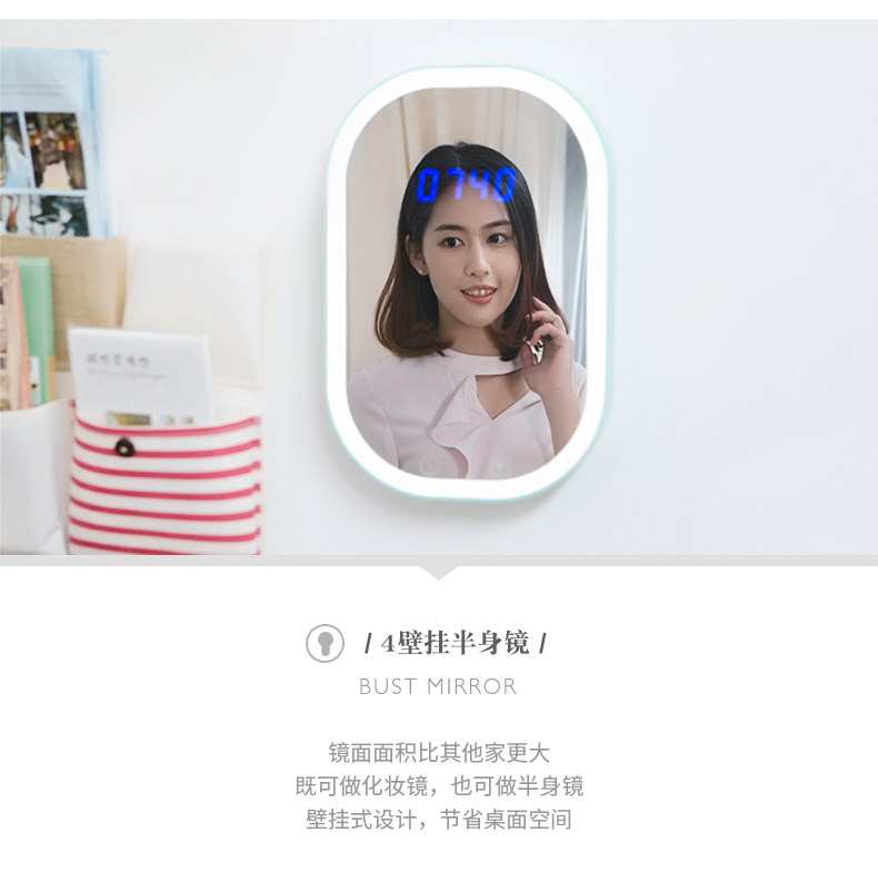 语歌多功能LED大镜子壁挂化妆镜台式带灯折叠梳妆公主镜台面现代