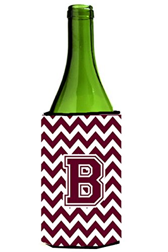 Letter B Chevron Maroon and White Wine Bottle Beverage Insulator Hugger CJ1051-BLITERK