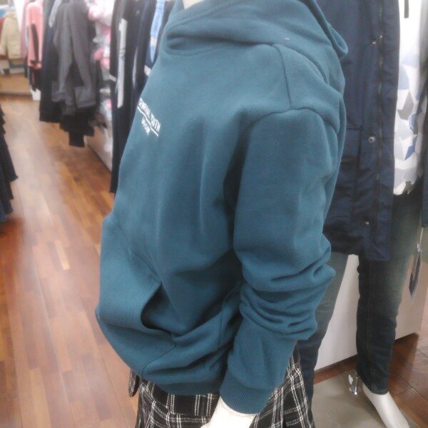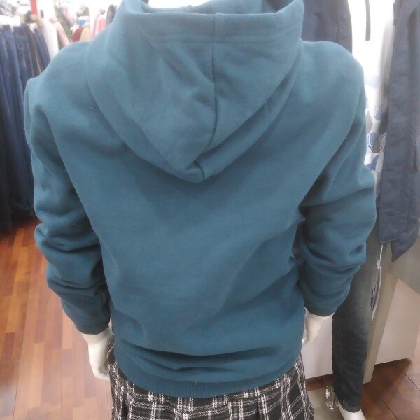 짙은 민트 ?상 같은 짙은 초록의 후두티.시크한 느낌이 도도하기까지 합니다.자칫 밋밋한 디자인은 보는 것과 착용했을때의 느낌이 상당히 다름을 알 수 있습니다.