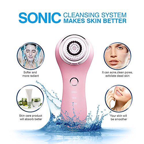 -. Title : Hangsun Electric Facial Brush SC200 Advanced Waterproof Sonic Cleansing System Portable Face Exfoliator Rechargeable Face Cleanser Massager Automatic Scrubber Machine with 3 Replacement Heads